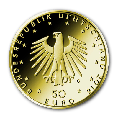 Technische Daten: Ausgabeland: Deutschland Prägeanstalt: Deutschland A, D, F, G, J Ausgabejahr: 2018 Nennwert: 50 Euro Material: Gold Gewicht: 7,77575g Durchmesser: 20,00 mm Auflage: 250.000 Stück Prägequalität: Stempelglanz Verpackung: Im Original-Etui mit Umverpackung |