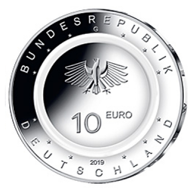 Die Bundesregierung hat beschlossen, eine 10-Euro-Sammlermünze „In der Luft“ mit einem farblosen Kunststoffring prägen zu lassen und sie am 4. April 2019 auszugeben.