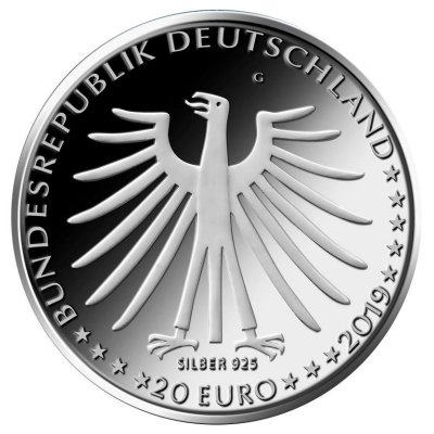 Technische Daten: Ausgabeland: Deutschland Prägeanstalt: Deutschland A, D, F, G, J Ausgabejahr: 2019 Nennwert: 20 EUR Material: Silber Gewicht: 18,00000g Durchmesser: 32,50 mm Prägequalität: Spiegelglanz Verpackung: Gekapselt im Blister |