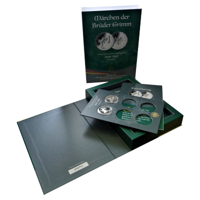Dieses wunderschöne 20 Euro Sammelbuch der Märchen der Gebrüder Grimm ist das ideale Geschenk und limitiert auf nur 4.444 Bücher weltweit! Es beinhaltet Platz für alle zwischen 2018 und 2023 erscheinenden 20 Euro Silbermünzen und beinhaltet auch bereits die beiden Ausgaben der Froschkönig (2018) sowie das Tapfere Schneiderlein (2019) in der höchsten Prägequalität Polierte Platte. Zudem sind für alle 6 Märchen die dazugehörigen Märchen als kleine Bücher mit den Illustrationen enthalten! Es folgen noch die Märchen Der Wolf und die sieben Geißlein, Frau Holle, Rumpelstilzchen und Hans im Glück. Ein ideales Geschenk zu jedem Anlass, ob Weihnachten, Geburtstag, Kommunion, usw. die Märchen der Gebrüder Grimm sollten in keinem Haushalt fehlen und die damit verbundenen echten 925er Sterlingsilbermünzen sind noch dazu ein bleibender Wert.