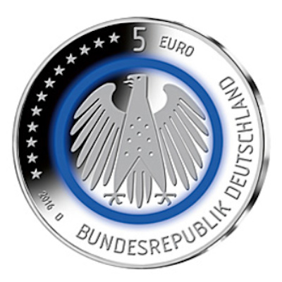 Im Jahr 2016 verausgabte Deutschland die neue 5 Euro Münze Planet Erde. Die Münze hat einen farbigen Polymer-Ring, eine absolute Neuheit und Besonderheit unter den Umlaufmünzen. Die Farbe des Polymer-Rings variiert zudem je nach Prägeanstalt, so dass es bei der Ausgabe Planet Erde zudem 5 verschiedene Blautöne gibt. Die Münze wurde nicht nur in der Prägequalität Stempelglanz sondern auch in der hochwertigen Prägung Spiegelglanz mit extra gestaltetem Sammleretui verausgabt.