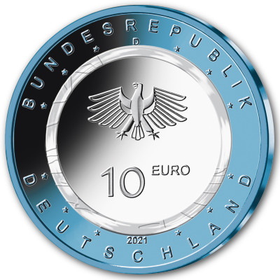 Die Bundesregierung hat beschlossen, eine 10-Euro-Sammlermünze „In der Luft“ mit einem farblosen Kunststoffring prägen zu lassen und sie am 4. April 2019 auszugeben.
