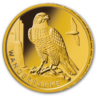 Der Wanderfalke ist die 4. Ausgabe der Serie 20 Euro Goldmünzen -Heimische Vögel-. |