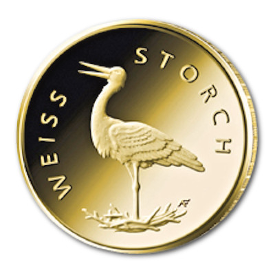 Der Weißstorch ist die 5. Ausgabe der Serie 20 Euro Goldmünzen -Heimische Vögel-. |