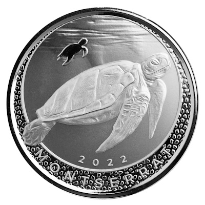 Die Scottsdale Mint verausgabt mit der Eastern Caribbean Central Bank (ECCB) das EC8-Programm. Es handelt sich mit den Ausgaben 2022 bereits um die 5. Ausgabe dieser wunderschönen Serie. Die dritte Ausgabe der 2022er Serie kommt aus Montserrat und zeigt eine Schildkröte (Turtle).