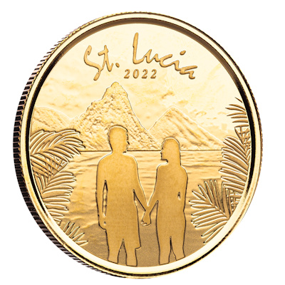 Die Scottsdale Mint verausgabt mit der Eastern Caribbean Central Bank (ECCB) das EC8-Programm. Es handelt sich mit den Ausgaben 2022 bereits um die 5. Ausgabe dieser wunderschönen Serie. Die vierte Ausgabe der 2022er Serie kommt aus St. Lucia und zeigt ein Paar (Couple).