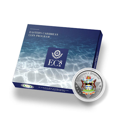Diese Ausgabe aus Antigua & Barbuda gehört zur fünften EC8 Serie mit Jahrgang 2022 und zeigt das Coat of Arms (Wappen). Es handelt sich hier um die Sammlerausgabe in Polierter Platte und aufwendig coloriert, limitiert auf nur noch 500 Stück. Die Auslieferung erfolgt im Original-Etui mit Echtheitszertifikat.