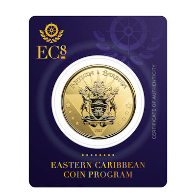 <<< Antigua und Barbuda - 10 Dollar EC8_5 Coat of Arms 2022 - 1 Oz Gold | |