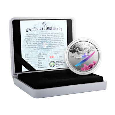 Technische Daten: Ausgabeland: Karibik Inseln Prägeanstalt: Scottsdale Mint Ausgabejahr: 2022 Nennwert: 2 Dollar Material: Silber Gewicht: 31,10300g Durchmesser: 39,00 mm Auflage: 500 Stück Prägequalität: Polierte Platte, coloriert Verpackung: Gekapselt im Original-Etui mit Umverpackung und Echtheitszertifikat |