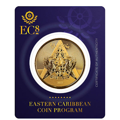 Die Scottsdale Mint verausgabt mit der Eastern Caribbean Central Bank (ECCB) das EC8-Programm. Es handelt sich mit den Ausgaben 2023 bereits um die 6. Ausgabe dieser wunderschönen Serie. Diese Ausgabe der 2023er Serie kommt aus St. Lucia und zeigt ein Wappen (Coat of Arms). Diese 1 Oz Feingoldmünze hat eine weltweite Auflage von 2.500 Stück.