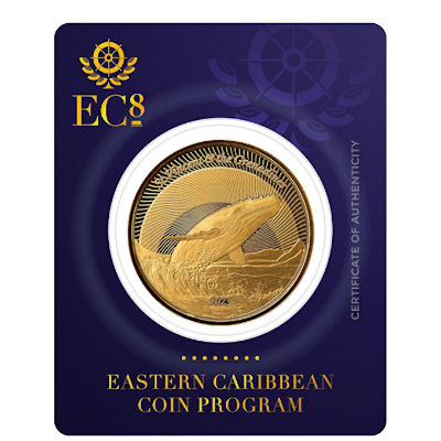 Die EC8 Serie wird in der 6. Auflage von St. Vincent und Grenadinen mit dem Motiv Buckelwal (Humpback Whale) fortgesetzt. Die 1 Oz Feingoldmünze kommt in Stempelglanz mit einer Auflage von 2.500 Stück.