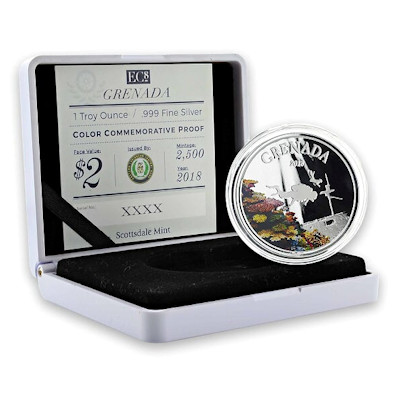 <<< Grenada - 2 Dollar EC8 Diving Paradise PP - 1 Oz Silber Color | |