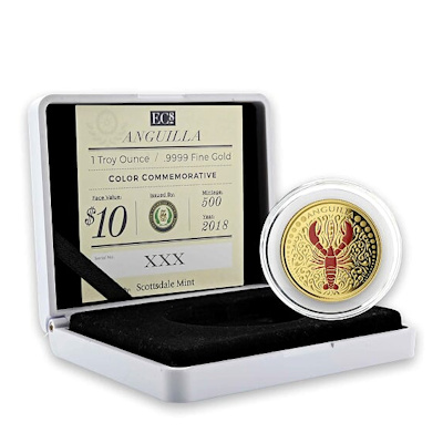 <<< Anguilla - 10 Dollar EC8 Lobster PP - 1 Oz Gold Color | |