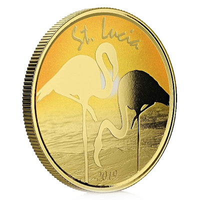 <<< St. Lucia - 10 Dollar EC8II Flamingo 2019 - 1 Oz Gold Color | |
