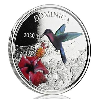 <<< Dominica - 2 Dollar EC8_3 Hummingbird PP 2020 - 1 Oz Silber Color | |