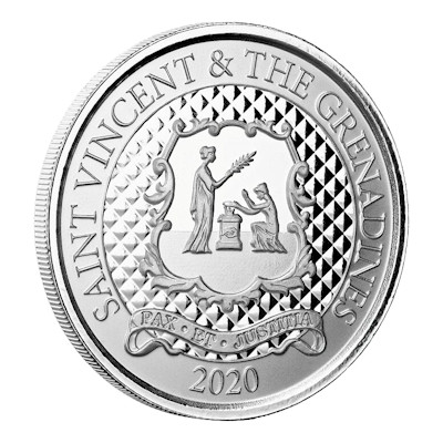Die Ausgabe St. Vincent und Grenadinen zeigt in der EC8_3 Serie mit Jahrgang 2020 das Motiv Pax et Justitia. Der Hintergrund enthält ein hübsches Rautenmuster, das St. Vincent und die zentrale Lage der Grenadinen huldigt - einzigartig gelegen mit St. Lucia im Norden, Barbados im Osten, Grenada im Süden und dem Karibischen Meer im Westen. Der äußere Rand der Münze zeigt das Land und das Jahr in einer zeitlosen, großgeschriebenen Serifenschrift.