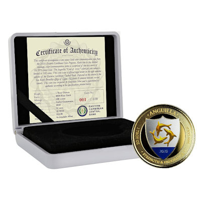 <<< Anguilla - 10 Dollar EC8_3 Coat of Arms PP 2020 - 1 Oz Gold Color | |