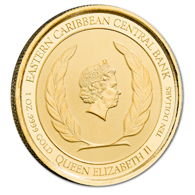 Aus Antigua & Barbuda stammt die erste Ausgabe dieser 4. Karibik Serie. Es handelt sich hier um die Ausgabe in 1 Oz 999,9er Feingold.