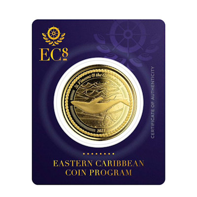 Die Scottsdale Mint freut sich, in Zusammenarbeit mit der Eastern Caribbean Central Bank (ECCB) das EC8-Programm mit der Veröffentlichung der Ausgabe St. Vincent und Grenadinen 2021 Humpback Whale fortzusetzen. Es ist die 6. Ausgabe der 4. EC8 Serie. Es handelt sich hier um die Ausgabe in 1 Oz Feingold verpackt und sicher geschützt in Certi-Lock(R) Verpackung!