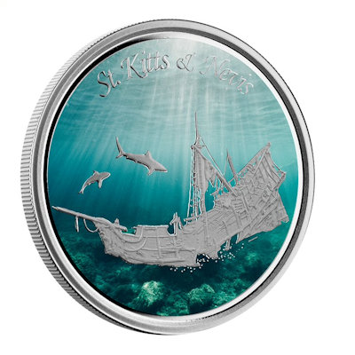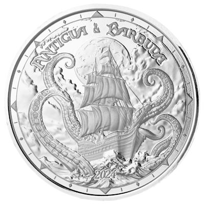 Die EC8 Serie wird von Antigua und Barbuda mit dem Motiv Rum Runner and Kraken fortgesetzt. Die 1 Oz Feinsilbermünze in Stempelglanz hat eine Auflage von 25.000 Stück weltweit. |
