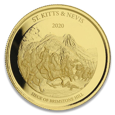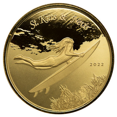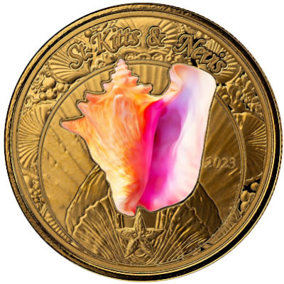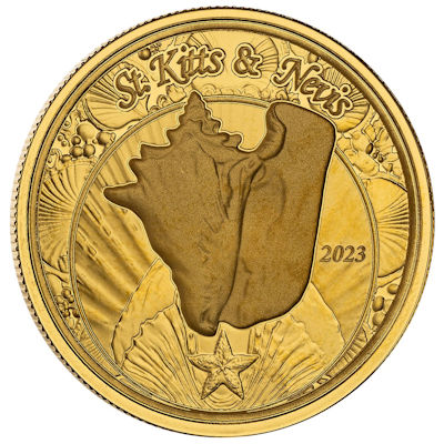 Die EC8 Serie wird von St.Kitts & Nevis mit dem Motiv Coat of Arms fortgesetzt. Die 1 Oz Feingoldmünze in Stempelglanz hat eine Auflage von 2.500 Stück weltweit. |