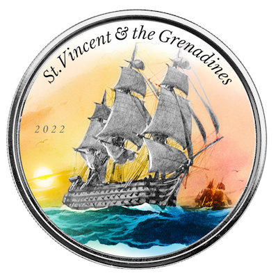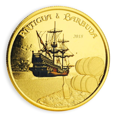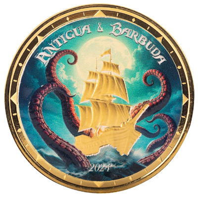 Die EC8 Serie wird von Antigua und Barbuda mit dem Motiv Rum Runner and Kraken fortgesetzt. Die 1 Oz Feingoldmünze in Stempelglanz mit Kolorierung hat eine Auflage von 100 Stück weltweit. |
