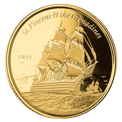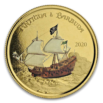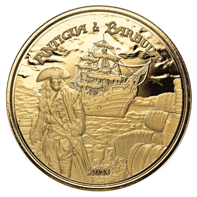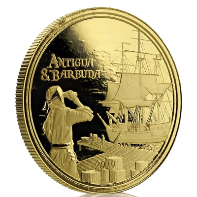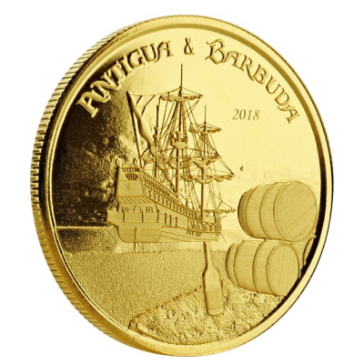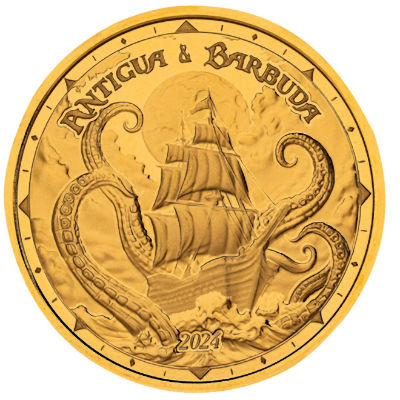 Die EC8 Serie wird von Antigua und Barbuda mit dem Motiv Rum Runner and Kraken fortgesetzt. Die 1 Oz Feingoldmünze in Stempelglanz hat eine Auflage von 2.500 Stück weltweit. |