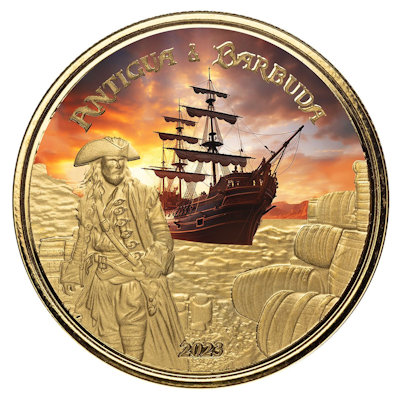 Die Scottsdale Mint freut sich, in Zusammenarbeit mit der Eastern Caribbean Central Bank (ECCB) das EC8-Programm mit der Veröffentlichung der Ausgabe Antigua u. Barbuda 2023 Rum Runner als 1 Oz Feingoldmünze mit Kolorierung fortzusetzen. |
