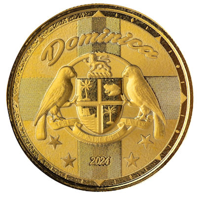 Dominica - 10 Dollar EC8 Coat of Arms 2024 - 1 Oz Gold Color | ||