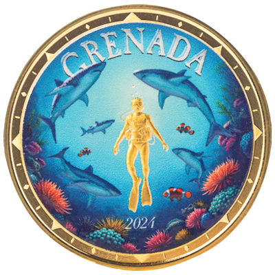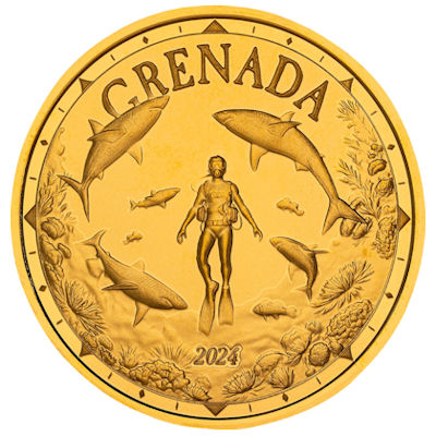 Grenada - 10 Dollar EC8 Shark Diver 2024 - 1 Oz Gold | ||