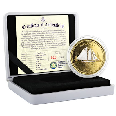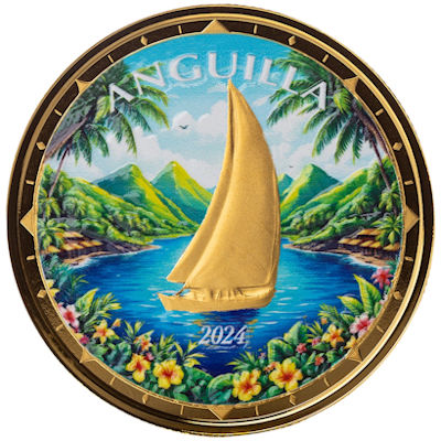 Die Scottsdale Mint freut sich, in Zusammenarbeit mit der Eastern Caribbean Central Bank (ECCB) das EC8-Programm mit der Veröffentlichung der Ausgabe Anguilla 2024 Regatta 1 Oz Gold Color fortzusetzen. |