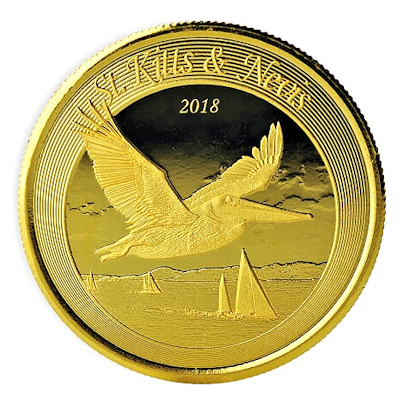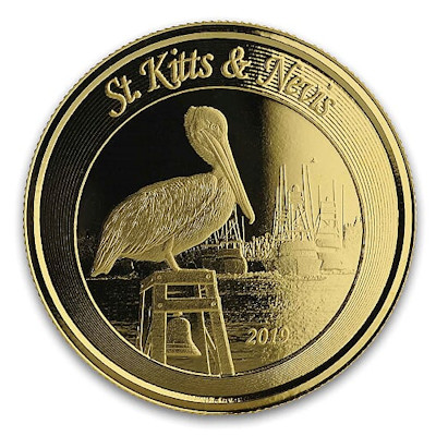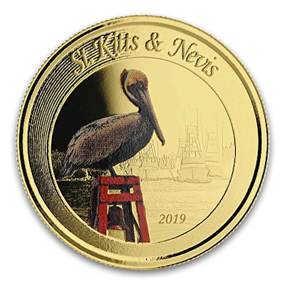 St. Kitts und Nevis - 10 Dollar EC8II Brauner Pelikan PP 2019 - 1 Oz Gold Color | ||