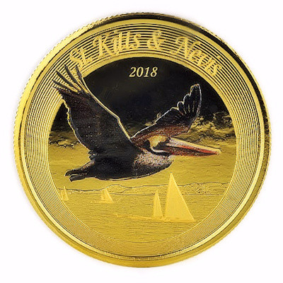 St. Kitts und Nevis - 10 Dollar EC8 Brauner Pelikan PP - 1 Oz Gold Color | ||