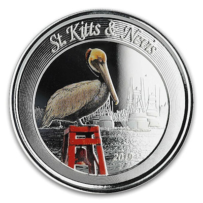 St. Kitts und Nevis - 2 Dollar EC8II Brauner Pelikan PP 2019 - 1 Oz Silber Color | ||