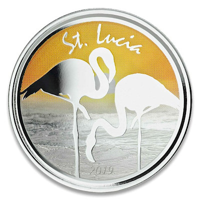 St. Lucia - 2 Dollar EC8II Flamingo 2019 - 1 Oz Silber Color | ||