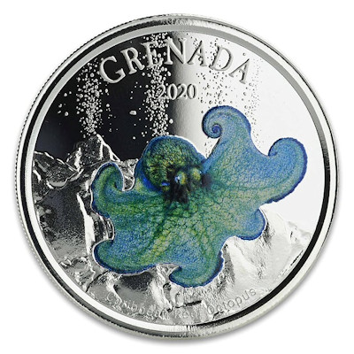 Die EC8 Serie wird von Grenada mit dem Motiv Shark Diver fortgesetzt. Die 1 Oz Feinsilbermünze in Stempelglanz Proof Like mit aufwendiger Kolorierung hat eine Auflage von 500 Stück weltweit. |