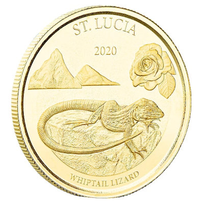 Aus Dominica stammt die dritte Ausgabe dieser 8-teiligen Serie mit dem Titel Die Naturinsel (The Nature Isle). Es handelt sich hier um die Ausgabe in 1 Oz 999,9er Feingold. |