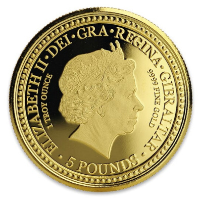 Es handelt sich hier um die Variante in 1 Oz Feingold in der Prägequalität Stempelglanz Brilliant Uncirculated (BU). Limitiert auf nur 5.000 Stück, ausgegeben von Gibraltar mit einem Nennwert von 5 Pfund (GBP).
