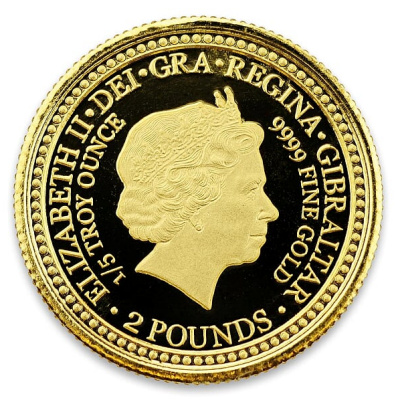 Es handelt sich hier um die Variante in 1/5 Oz Feingold in der Prägequalität Stempelglanz Brilliant Uncirculated (BU). Limitiert auf nur 5.000 Stück, ausgegeben von Gibraltar mit einem Nennwert von 5 Pfund (GBP).