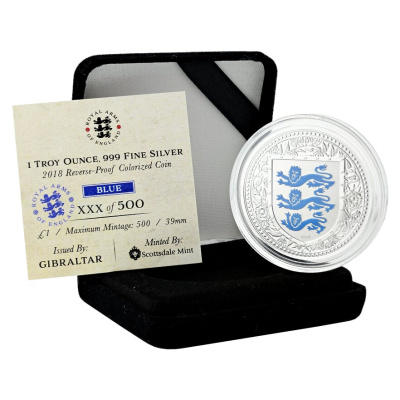 Von der Scottsdale Mint produziert und von Gibraltar Ausgegeben erscheint diese umfassende Serie mit den Royal Arms of England, also dem englischen 3 Löwen Wappen. Die Serie umfasst die Ausgabe in 1 Oz Feinsilber BU (limitiert auf 50.000 Stück) sowie in 1 Oz Feingold BU (5.000 Stück) und in 1/5 Oz Feingold BU (5.000 Stück). Als Sammlerausgabe erscheint die 1 Oz Feinsilbermünze in Reverse Proof und coloriert und zwar in den colorierten Varianten Rot, Blau, Lila und Gelb (jeweils 500 Stück) und ganz selten und rar in Schwarz (limitiert auf nur 99 Stück).