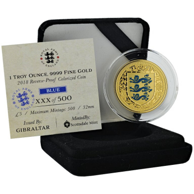 Von der Scottsdale Mint produziert und von Gibraltar Ausgegeben erscheint diese umfassende Serie mit den Royal Arms of England, also dem englischen 3 Löwen Wappen. Die Serie umfasst die Ausgabe in 1 Oz Feinsilber BU (limitiert auf 50.000 Stück) sowie in 1 Oz Feingold BU (5.000 Stück) und in 1/5 Oz Feingold BU (5.000 Stück). Als Sammlerausgabe erscheint die 1 Oz Feinsilbermünze in Reverse Proof und coloriert und zwar in den colorierten Varianten Rot, Blau, Lila und Gelb (jeweils 500 Stück) und ganz selten und rar in Schwarz (limitiert auf nur 99 Stück).