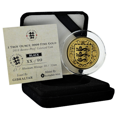 Gibraltar - 5 GBP Royal Arms of England BLACK 2018 - 1 Oz Gold BLACK (Nur 99 Stück!!!) | ||