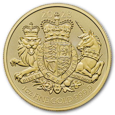 Das schöne Royal Arms-Design ist jetzt auf 1 Oz Feingold geprägt und ist eine Anlagemünze der Royal Mint aus Großbritannien. Die Auslieferung erfolgt einzeln gekapselt oder in Münztasche verpackt. Es ist die 1. Ausgabe der Serie die das Porträt von König Charles dem III. zeigt! |