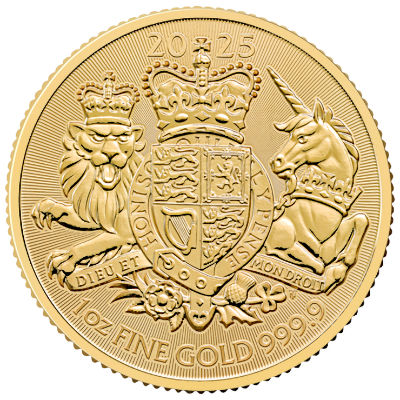 Das schöne Royal Arms-Design ist jetzt auf 1 Oz Feingold geprägt und ist eine Anlagemünze der Royal Mint aus Großbritannien. Die Auslieferung erfolgt einzeln gekapselt oder in Münztasche verpackt. |