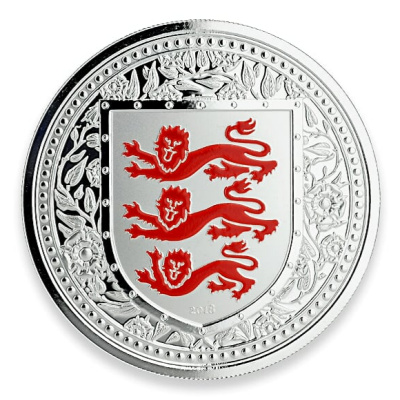 Von der Scottsdale Mint produziert und von Gibraltar Ausgegeben erscheint diese umfassende Serie mit den Royal Arms of England, also dem englischen 3 Löwen Wappen. Die Serie umfasst die Ausgabe in 1 Oz Feinsilber BU (limitiert auf 50.000 Stück) sowie in 1 Oz Feingold BU (5.000 Stück) und in 1/5 Oz Feingold BU (5.000 Stück). Als Sammlerausgabe erscheint die 1 Oz Feinsilbermünze in Reverse Proof und coloriert und zwar in den colorierten Varianten Rot, Blau, Lila und Gelb (jeweils 500 Stück) und ganz selten und rar in Schwarz (limitiert auf nur 99 Stück). | |