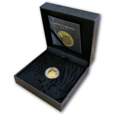 Es handelt sich bei dieser schön gestalteten Münze um den Koreanischen Tiger aus 2016 von der Südkoreanischen Prägeanstalt KOMSCO. Die Ausgabe ist der höchsten Prägequalität Polierte Platte geprägt. Die Auslieferung erfolgt im Original-Etui mit Umverpackung und nummeriertem Echtheitszertifikat. Die Auflage beträgt lediglich 4.032 Stück weltweit.