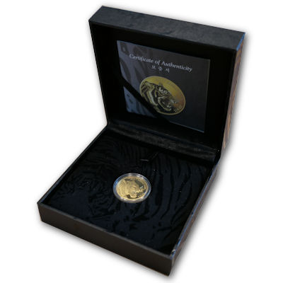Es handelt sich bei dieser schön gestalteten Münze um den Koreanischen Tiger aus 2017 von der Südkoreanischen Prägeanstalt KOMSCO. Die Ausgabe ist der höchsten Prägequalität Polierte Platte geprägt. Die Auslieferung erfolgt im Original-Etui mit Umverpackung und nummeriertem Echtheitszertifikat. Die Auflage beträgt lediglich 4.034 Stück weltweit.