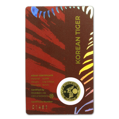Dieser wunderschöne koreanische Tiger ist auf 1/10 Oz Gold verewigt. Die Ausgabe der KOMSCO aus Südkorea ist auf nur 1.500 Stück limitiert und wird im nummeriertem roten Blister verausgabt.