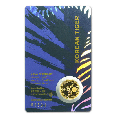 Dieser wunderschöne koreanische Tiger ist auf 1/10 Oz Gold verewigt. Die Ausgabe der KOMSCO aus Südkorea ist auf nur 1.500 Stück limitiert und wird im nummeriertem blauen Blister verausgabt.