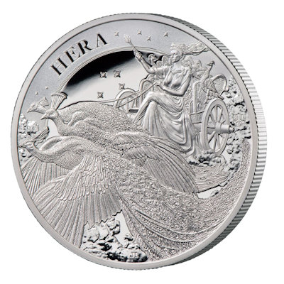 Es sind Geschichten von komplizierten Familiensagen, von mächtigen Dynastien, geführten Kriegen, gefundenen und verlorenen Lieben, den Welten der Natur und der Magie und den Reichen der Götter und Menschen, mit fantastischen Kreaturen und Charakteren, die unsere Vorstellungskraft und Lebensregeln inspirieren. Moral, Tugenden, Überzeugungen und Ethik sind alle integraler Bestandteil der Mythologie der Göttinnen. Die Serie der Göttinnen beginnt mit Hera, Ehefrau und Schwester des mächtigen Zeus, einer der zwölf Hauptgottheiten des griechischen Pantheons, die auf dem Olymp lebte und wird vom Ausgabeland St. Helena und von der The East India Company verausgabt. Die Münze ist in der höchsten Prägequalität Polierter Platte in den Größen 1 Oz, 5 Oz und 10 Oz Silber sowie in 1 Oz Gold erhältlich. Natürlich erfolgt die Auslieferung gekapselt im Original-Etui mit nummeriertem Echtheitszertifikat. Beschreibung zur Münze: